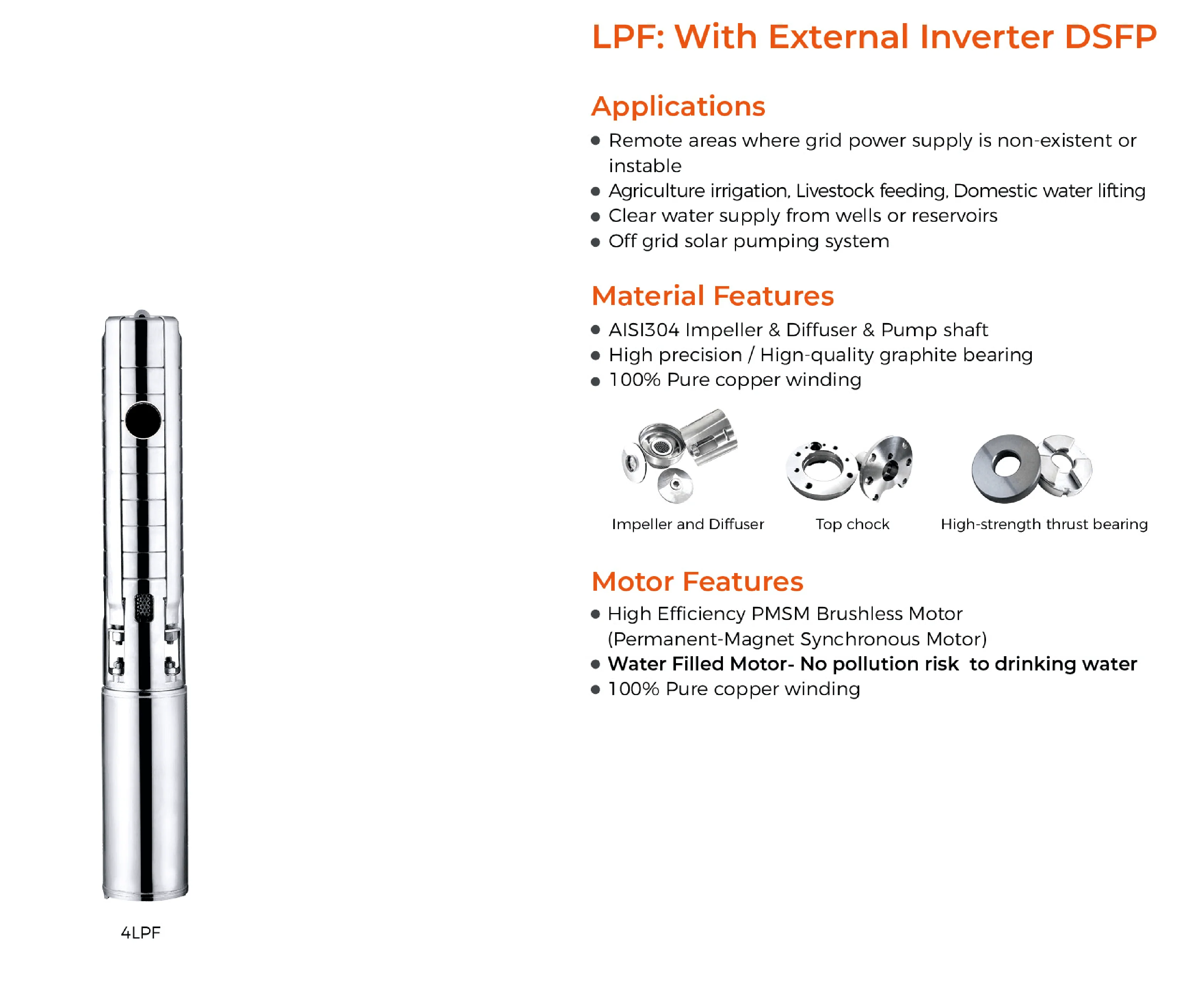 The BBT 4” LPF system includes the DSFP-200-1.5 intelligent hybrid inverter, which offers the following features: