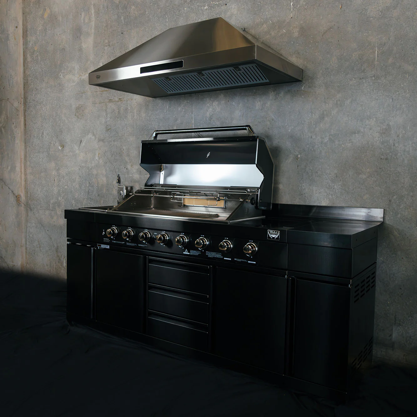 Bull BBQ Black Edition 8-Burner Outdoor Kitchen With Sink & Rotisserie – #304 Premium Stainless Steel